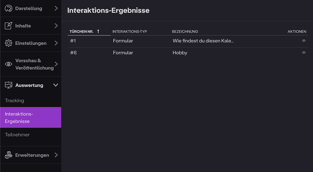 - Gehe zu Auswertung → Interaktions-Ergebnisse.