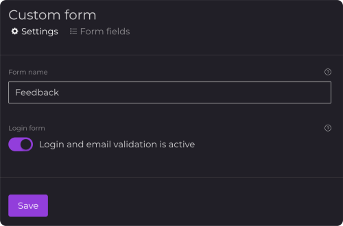 These are extensions of the login form and are used to collect additional data. For example, they can include free text fields for opinion polls or feedback.